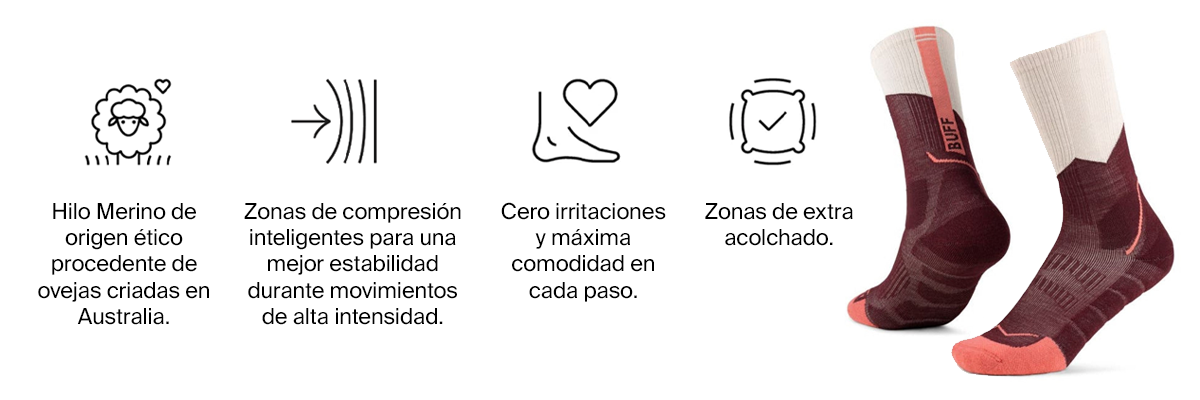 Los calcetines de trekking BUFF® están diseñados para rendir al máximo en la montaña: combinan amortiguación estratégica, tejido sin costuras y materiales transpirables que aseguran comodidad desde el primer paso hasta la cima.